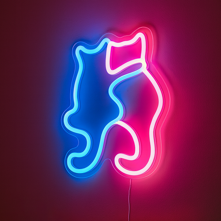 Bring charm and personality to any space with this adorable cat-shaped LED neon sign. Designed for easy USB power and wall-mounting, it emits a soft, warm glow that creates a cozy, inviting atmosphere — whether in a bedroom, living room, boutique, or shop window.
